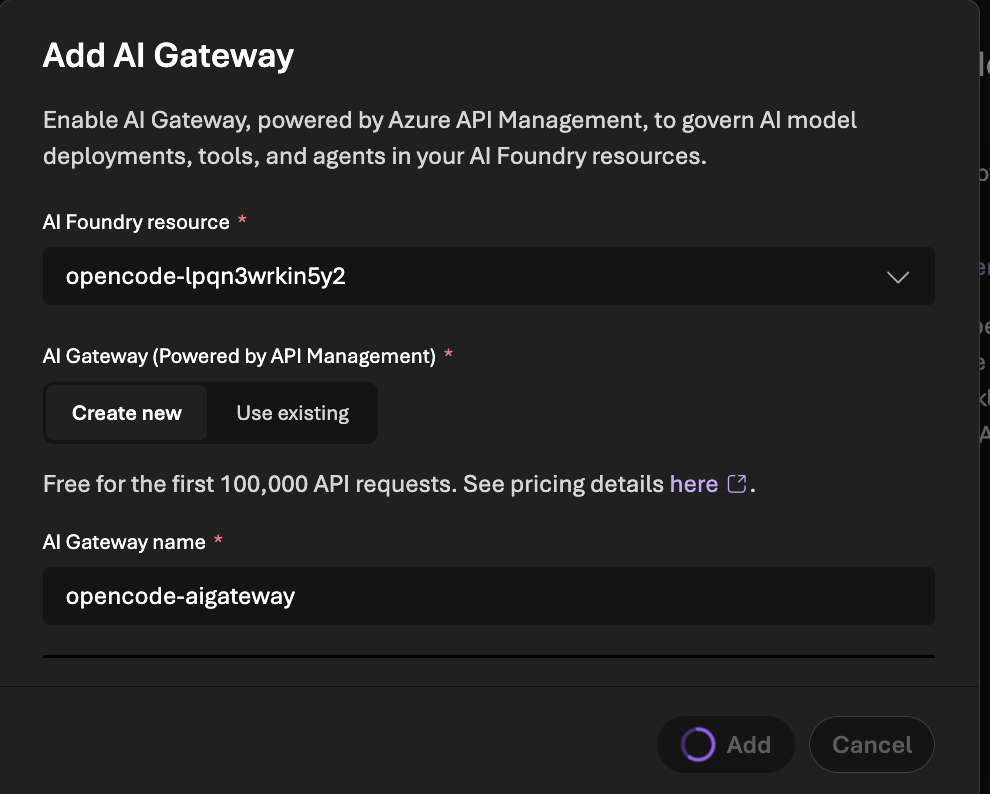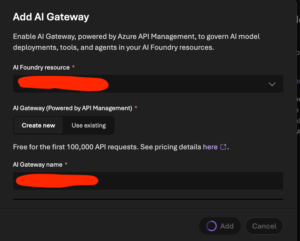 The docs point out that AI Gateway includes a free tier and refer to pricing details from the Foundry AI Gateway setup page. At the time I was doing this, the portal and docs wording around the first 100k requests sounded nice, but I never found a verification path to see that I'm actually getting them (and what determines it).